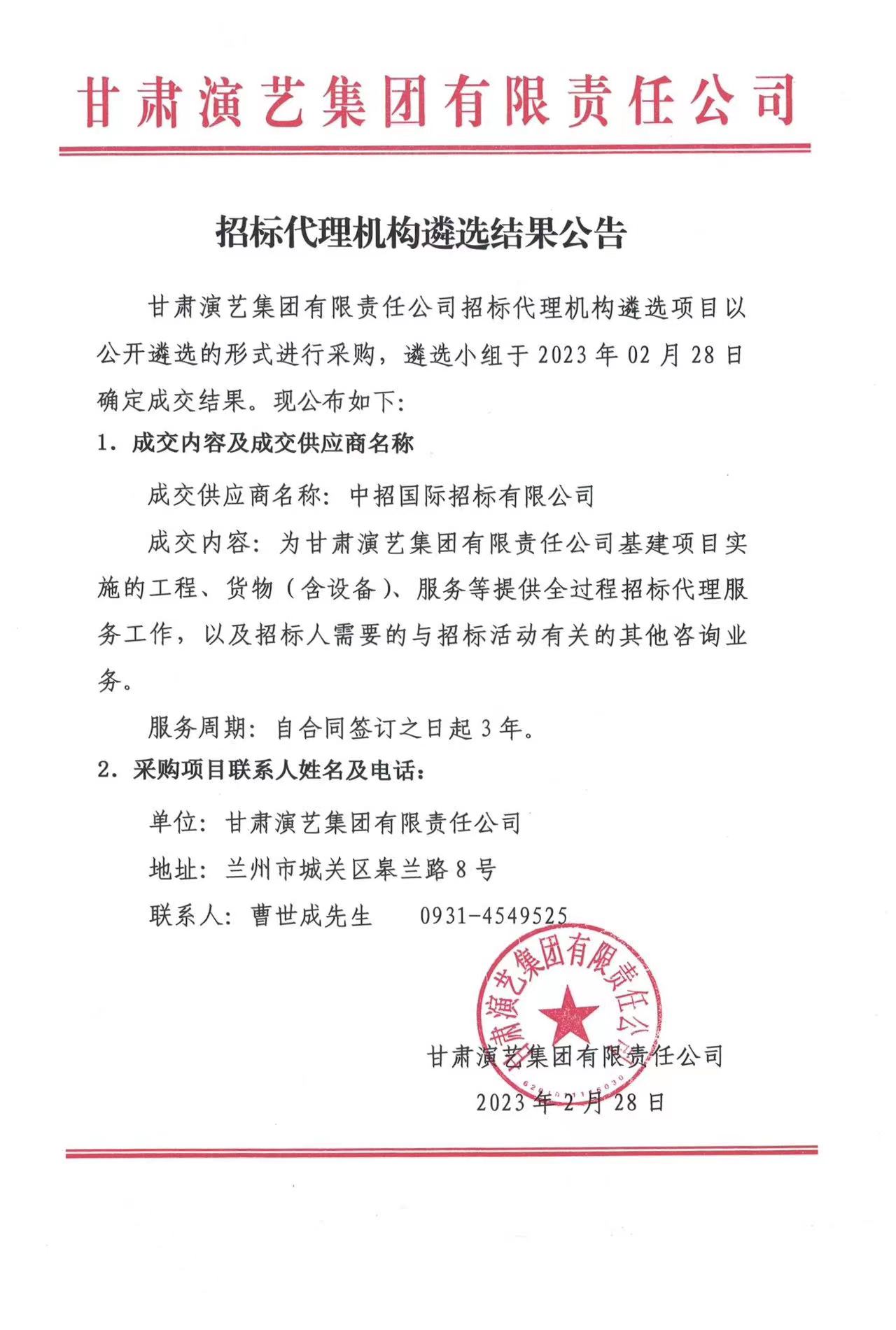 招標(biāo)代理機構(gòu)遴選結(jié)果公告
