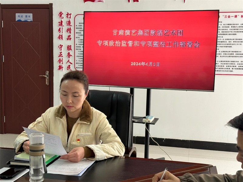 為積極落實甘肅演藝集團黨委“打造精品創(chuàng)作和惠民演出廉潔工程”專項政治監(jiān)督工作,確保院團劇目創(chuàng)排和演出工作保持高度的廉潔性和規(guī)范性,促進院團文化藝術(shù)事業(yè)的健康發(fā)展。甘肅演藝集團敦煌藝術(shù)團于2024年4月3日召開專項政治監(jiān)督和專項整治工作部署會,會議由敦煌藝術(shù)團黨總支書記、團長許蕊主持,黨總支全體委員、各支部全體委員、中層干部和職工代表參加了此次會議。